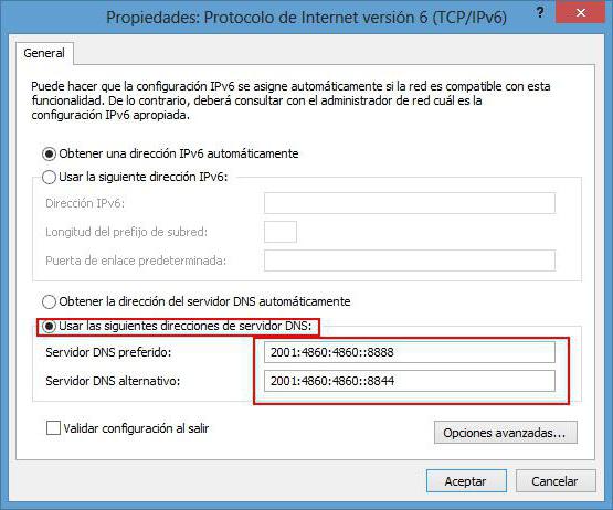 Як вже говорилося вище, тут головна роль відводиться встановленню правильних значень бажаного і альтернативний DNS-сервера. Для практичного застосування слід прописати наступні дані (наприклад, для сервісів Google):
