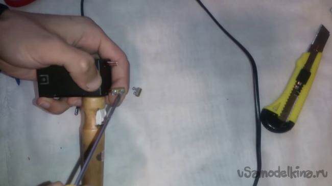 Продовжуємо збирати його довше, з’єднуємо мережевий шнур, з вмикачем і з самим паяльником