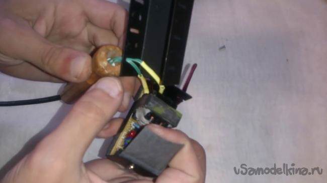 Мотаємо нашу обмотку, вона складається з одного повного витка нашим проводом. Для того щоб підняти вихідний струм, бажано дві паралельні шини і таким чином скрутити на каркас