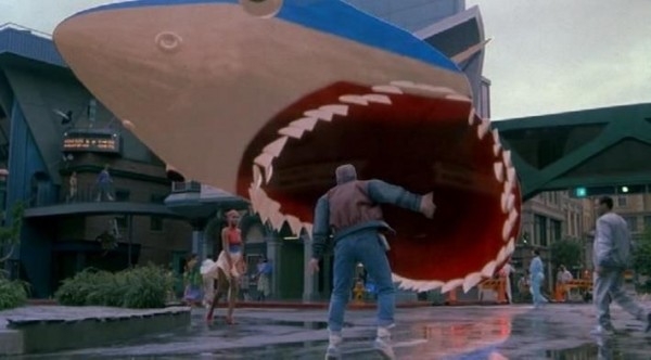 Один з небагатьох по-справжньому комп’ютерних спецефектів у фільмі — віртуальна акула з афіші, «кусає» головного героя. Зіграти переляк Майкла Джей Фоксу довелося самостійно, ніяких акул він не бачив. Сам ефект додали багато пізніше до вже створених матеріалів