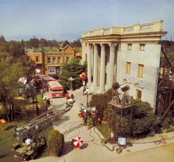 На цей раз левову частку зйомок довелося перенести з відкритих павільйонів Універсальний Долина монументів — майже червону пустелю з окремими підносяться скелями. Те що треба для фільму про ковбоїв і подорожі в часі!
