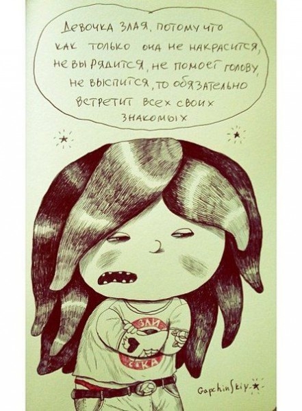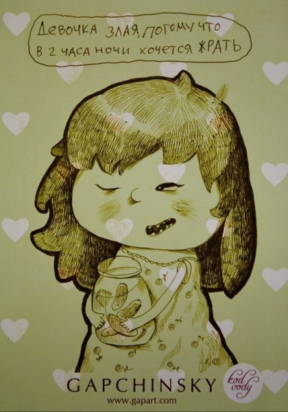 Серія графічних робіт Дмитра Гапчинского «Чому дівчинка сердиться». Спочатку, за запевненням автора, це були просто малюнки в блокноті, замальовки життєвих спостережень, підказки знайомих і друзів, що перетворилися в цілу серію цікавих робіт