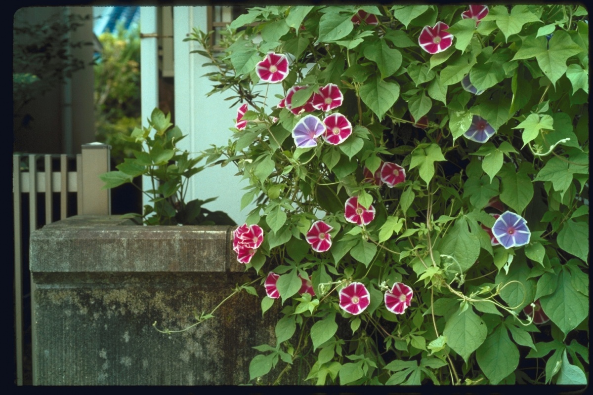 Іпомея. Швидкозростаюча ліана. Використовують для вертикального озеленення альтанок, парканів.