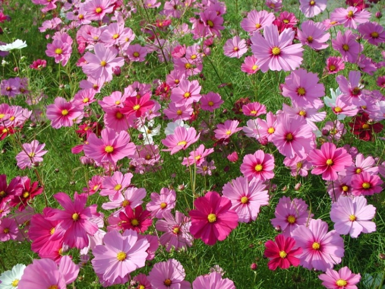 Космос (космея). На бідних грунтах цвіте краще. Цвітіння тривале, від 70 до 80 днів.