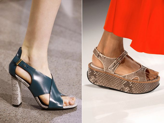 Якщо в зимових колекціях в основному переважала класична чорна шкіра, то влітку дизайнери вирішили відірватися по повній. Безумовно, ви зустрінете безліч взуття зі шкіри, але крім неї ще буде замша, гума, текстиль, перфоровані матеріали і навіть хутро, природно, в цілях декору.