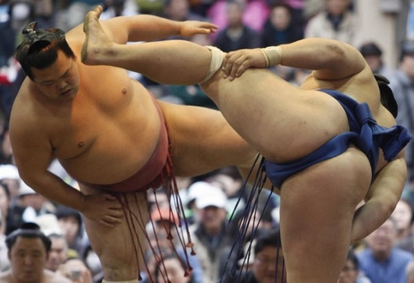 Борці сумо незважаючи на велику вагу і габарити довго відпрацьовують розтяжку. Кожен професійний сумоторі повинен вміти сідати на шпагат.