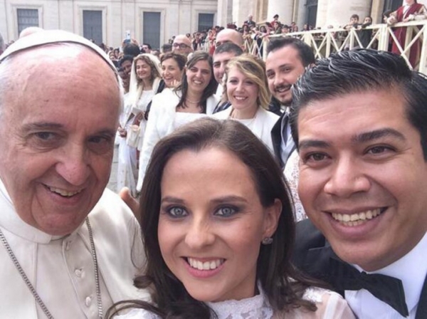 Папа Франциск приєднався до селфи з молодятами у Ватикані.