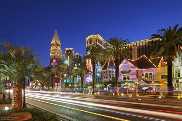 Лас-Вегас займає площу 340 кв. км, але інтерес представляє тільки одна вулиця довжиною 4 милі. Лас-Вегас Бульвар — саме вздовж нього стоять майже всі ті хмарочоси, які видно з літака. І всі ці хмарочоси — готелі, суміщені з казино, торговими комплексами, ресторанами і майданчиками для шоу.