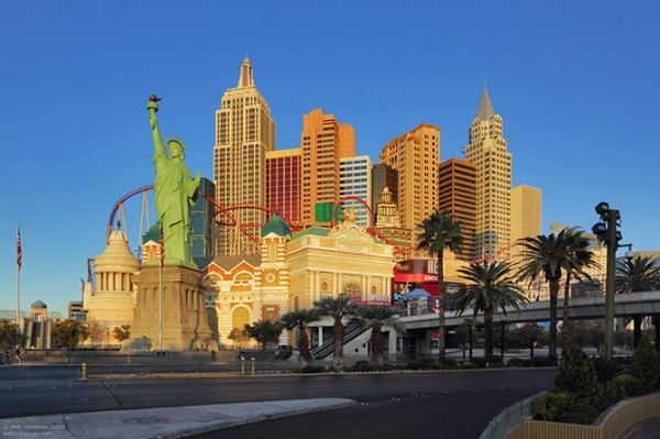 Лас-Вегас Бульвар простягнувся з півдня на північ. Давайте подивимося, що ж на ньому стоїть. Майже в самій південній його частині знаходиться готель Нью-Йорк. Його будівля нагадує Манхеттен (це, до речі, все одне будівлю), а на розі Бульвару і Тропікана-авеню стоїть статуя Свободи.