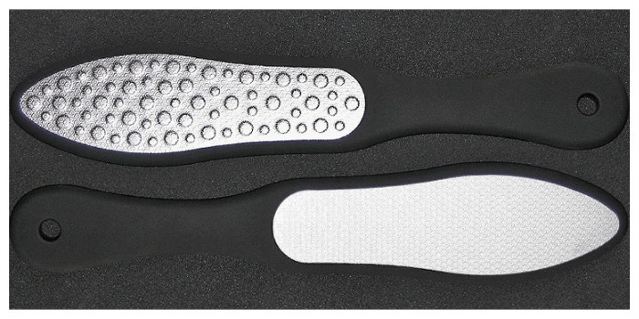 - Kaizer (Кайзер). Металева терка відмінно справляється з грубими наростами і натоптишів. Друга сторона має наждачний поверхню, вона використовується для шліфування.