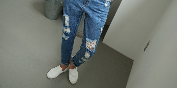 - Драні штанини з великими розривами.