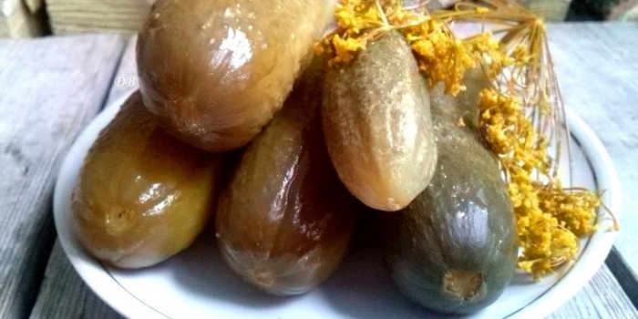 - Якщо ви вирішили заготовити консервовані плоди відкритим способом (без закупорки кришками), слід періодично видаляти з поверхні розсолу білу плівку. Для запобігання утворення цвілі краще зберігати домашню заготовку в холодному приміщенні і додати до маринаду трохи гірчичного порошку.