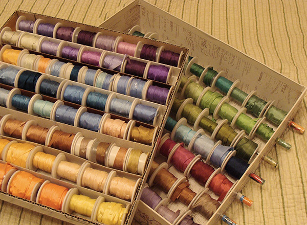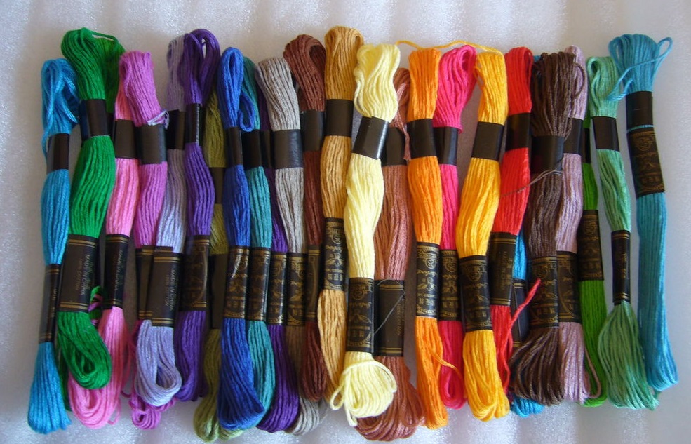 Для фіксування атласних смуг тканини знадобляться вишивальні нитки. Також цей елемент потрібен для складання і формування стебла, оформлення суцвіть. Нитки повинні чітко відповідати тону матеріалу. Для малювання стеблинок і суцвіть можуть бути використані нитки перлі, вовняні пасма, ремінці, бродер, а також тонкі шкіряні ремінці і джгути.