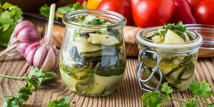 Корисні, ніжні і смачні плоди закочують навіть смаженими. Цей метод консервації абсолютно не позначається на смакових якостях овоча і навіть робить його більш насиченим. Продукти для консервації кабачків Пальчики оближеш: