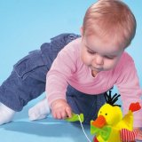 • до завершення шести місяців життя дитина не дотягується до іграшки в положенні лежачи на животі;