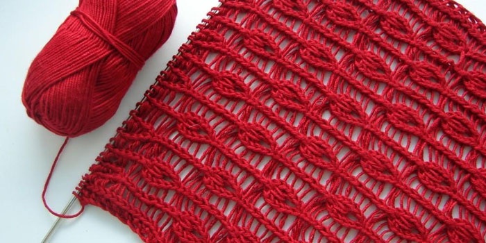 • Простий ажурний орнамент. Легкий красивий малюнок можна швидко освоїти зі схемами або покроковим описом. Техніка передбачає використання лицьових петель, накидов, петель. Вони провязываются по дві разом з нахилами направо, потім наліво.