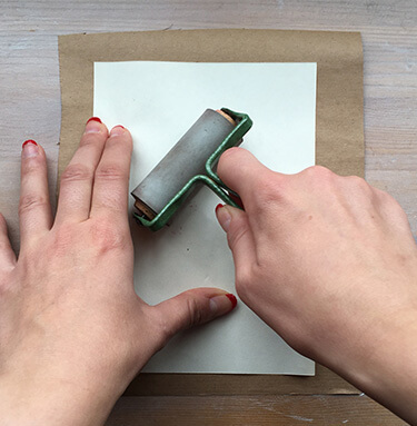 Тепер покладіть рослина на пакувальний папір, накрийте зверху невеликим листком і продавіть валиком.