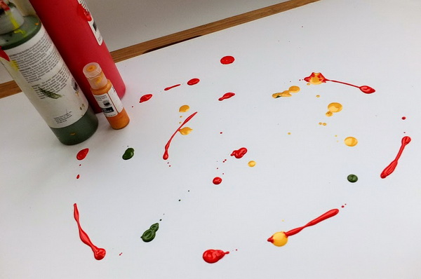 Щоб їх зробити, спочатку капніть акрилову фарбу на папір у будь-якому напрямку.