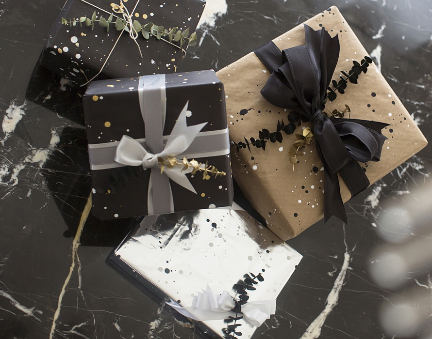 Набагато простіше зробити святкову упаковку за допомогою бризок фарби.