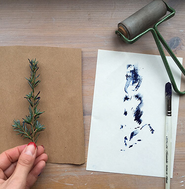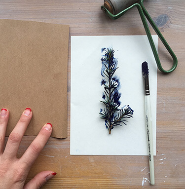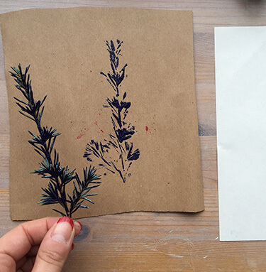 Опустіть її у фарбу. Потім центральною частиною гілки притисніть до паперу і відразу приберіть.