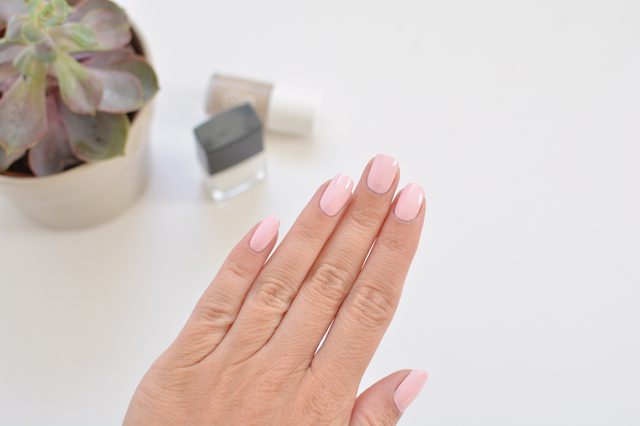Крок 1. Для основи – нафарбуйте нігті лаком однотонного кольору. Вибирайте лак світлих тонів – так малюнок буде добре видно. Залиште покриття добре висохнути, перш ніж приступите до нанесення малюнка.