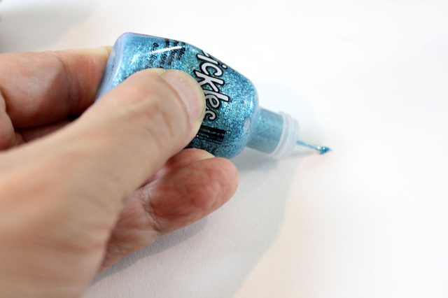Крок 4. Можна використовувати різні кольори для отримання максимального ефекту. Обов’язково висушіть клей з блискітками, перед тим як робити прикраса.