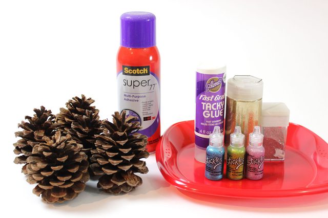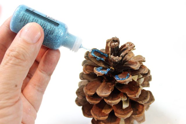 Крок 2. Посипте зверху на шишку блискітки. Клей повинен висохнути.