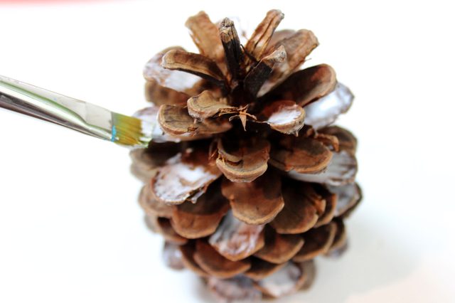 Крок 3. Після того як декор повністю висохне, нанесіть на інші частини шишки клей.