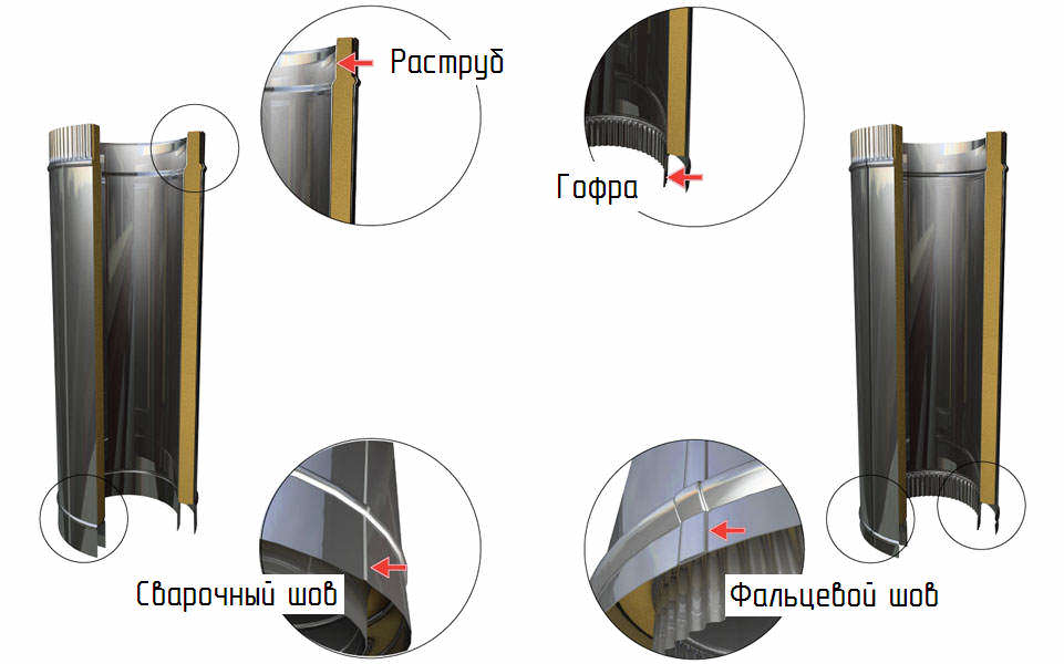 Легкість складання такого димоходу полягає в тому, що вся конструкція вже складається з декількох труб, призначених для зовнішньої і внутрішньої складання.