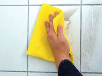 Цей етап включає в себе ретельне миття кахлю і його шліфування. Для того щоб фарба лягла якісно і трималася довго, поверхню необхідно знежирити. У випадку з кахельною плиткою для цього можна використовувати звичайну щітку і миючий засіб. При відмиванні кухонного «фартуха» над гарнітуром, необхідно приділити особливу увагу міжплиточним швах.