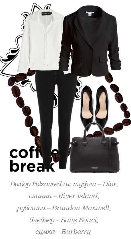 Біла сорочка, застебнута на всі гудзики, додасть образу офіційні нотки. Комплект з чорних скинни і сорочки доповніть тонким кардіганом або укороченим прямим жакетом. Приміряйте скінні з блейзером і водолазкою, акуратним однотонним пуловерів.