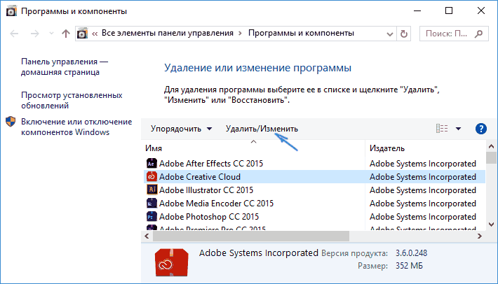 - Для того, щоб видалити будь-яку з програм, просто виділіть її у списку і натисніть кнопку «Видалити» у верхньому рядку.