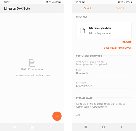 Для установки буде потрібно встановити сам додаток Linux on Dex (Play Маркет недоступне, я брав на apkmirror, версію 1.0.49), а також завантажити на телефон і розпакувати спеціальний образ Ubuntu 16.04 від Samsung, доступний на https://webview.linuxondex.com/.