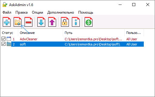 Це не погано, а навпаки, ефективно, але будьте уважні: після експериментів, якщо вирішите видалити AskAdmin, спочатку розблокуйте всі заборонені програми та папки, а також не блокуйте доступ до важливих системних папок і файлів, теоретично від цього можуть бути неприємності.