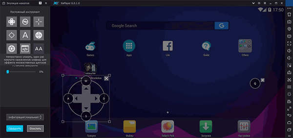 Якщо ви коли-небудь користувалися іншими утилітами для запуску Android під Windows, інтерфейс буде вам дуже знайомий: те ж вікно, та ж панель з основними діями. Якщо якась з іконок для вас незрозуміла, просто піднесіть і затримаєте вказівник миші над нею: інтерфейс XePlayer переведений на російську досить добре і проблем виникнути не повинно.