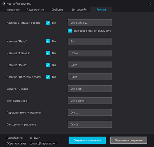 - І, нарешті, загляньте на вкладку «Ярлики». Там зібрані гарячі клавіші для управління емулятором: ними для деяких дій може виявитися зручніше користуватися, ніж мишею.