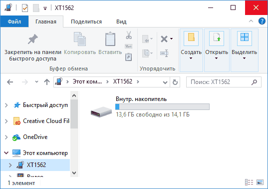 - При підключенні Android пристрою до комп’ютера в цьому випадку ви будете бачити і мати доступ тільки до внутрішньої пам’яті на карті. Те ж саме і у файлових менеджерах на самому пристрої (див. Кращі файлові менеджери для Android).