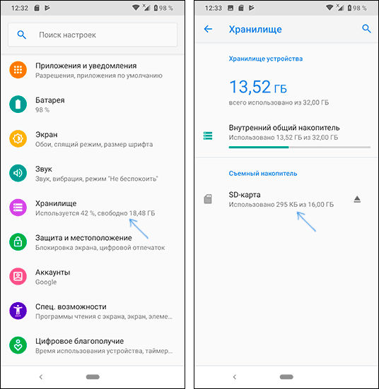 Можна припустити, що коли до внутрішньої пам’яті Android об’ємом N приєднується обсяг карти пам’яті M, загальний доступний об’єм внутрішньої пам’яті повинен стати рівним N+M. Більше того, приблизно це відображається і в інформації про сховище пристрою, однак за фактом все працює трохи інакше: