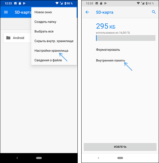 Якщо ви вирішите відключити карту пам’яті від внутрішньої пам’яті, зробити це просто — перенесіть з неї всі важливі дані на комп’ютер, після чого зайдіть, також як і в першому способі в налаштування SD-карти.