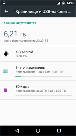 На цьому процес завершено: якщо зайти в параметри «Сховище і USB накопичувачі», то ви побачите, що місце, зайняте у внутрішній пам’яті зменшилася, на карті пам’яті — збільшилася, а загальний обсяг їх пам’яті також збільшився.