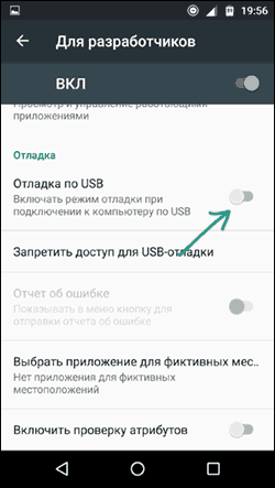В подальшому, ви можете вимкнути налагодження в тому ж розділі меню, а при потребі — відключити і прибрати з меню Налаштувань пункт «Для розробників» (посилання на інструкцію з необхідними діями була наведена вище).