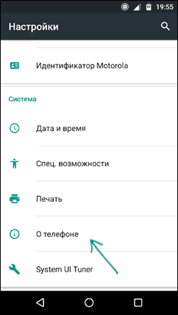 - Зайдіть в Настройки і виберіть пункт «Про телефон» або «Про планшеті», на Samsung — «Відомості про телефон» — «Відомості про ПО». На чистому Android 9.0 зайдіть в пункт «Система» — «телефон».