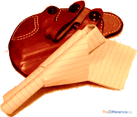 - Зброя, зроблена за трафаретом. Будь вподобане зображення пістолета можна роздрукувати і акуратно вирізати по контуру. Якщо попередньо скласти аркуш навпіл і нанести малюнок з двох сторін, то зброю вийде об’ємним.