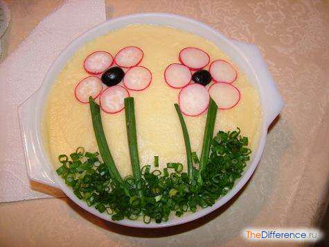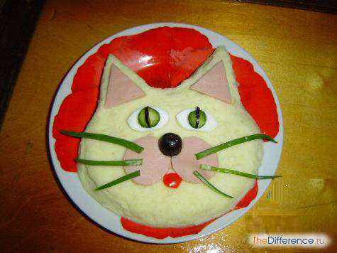 Однак красивого оформлення піддаються не тільки холодні закуски, гарячі страви теж можна декорувати незвичайним чином. Взяти хоча б банальне картопляне пюре, шановане дітьми всіх вікових груп. Замість того, щоб викладати його гіркою на тарілку, варто проявити трішки фантазії і винахідливості (фото). Те ж саме стосується і рису, чия клейка структура дозволяє створювати химерні фігури і форми. Додати гарнірів на диво яскравий і святковий вигляд допоможуть такі барвники, як морква, буряк, брокколі і шпинат. М’ясні їжачки з колючками з спагетті, оригінальні клубочки з курячої начинкою, забавні восьминоги з сосисок – ось лише кілька прикладів смачних і поживних гарячих страв.