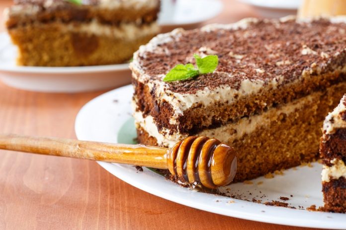 Щоб бісквітний медовик добре вийшов, потрібно взяти натуральний і ароматний мед. Краще гречаний, він найбільш запашний.