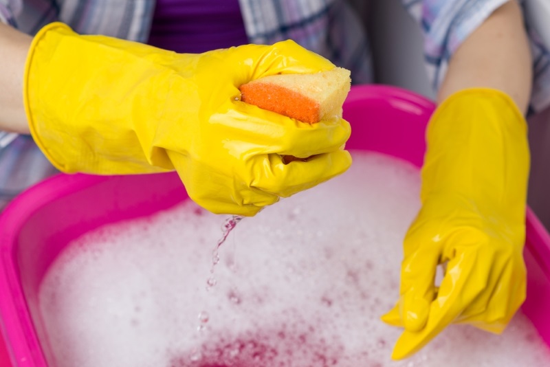 Якщо на дублянці є дуже жирні плями, використовуй мильний розчин з рідиною для миття посуду. Таким чином можна відчистити бруд або засмальцьовані ділянки без особливих зусиль і зайвих вкладень.