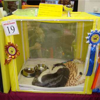 Для участі у виставці необхідна спеціальна виставкова намет. Підбирати потрібно колір, підходить під колір вихованця, щоб вдало поєднувався сокрасом. Є величезний асортимент виставкових наметів: квадратні намети для кішок, прямокутні, овальні, напівкруглі, круглі. Причому намети бувають як одинарні, так і подвійні і потрійні.