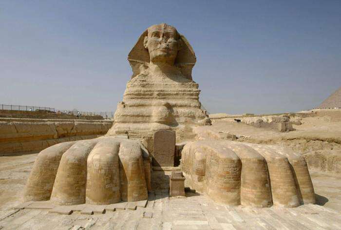 Єгипетський Сфінкс є найбільш загадковою скульптурою. Він розташований на плато Гізо в Долині Царів. Він як би охороняє піраміди, оскільки знаходиться ближче всіх до міста.
