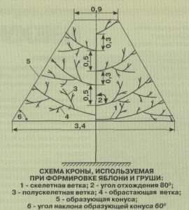 Формування крони у молодих дерев яблуні та груші. В такому віці обрізку проводять для того, щоб допомогти дереву сформувати достатню кількість скелетних розгалужень, розмістити їх в просторі так, щоб кожна гілка могла розвиватися в сприятливих умовах освітлення, обростати плодовими утвореннями.