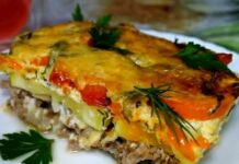 - Акуратно вливаючи бульйон тонкою цівкою, покрити рідиною рибно-овочеву начинку. Поставити в холодильник на 5-6 годин.